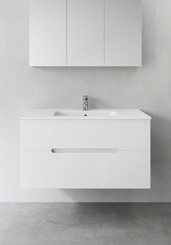 Servantskap i fire bredder og to dybder i bredde 600/800. Myktlukkende skuffer med innside i elegant antrasitt eller hvitt avhengig av farge på møbelet, skuffematter og skuffeinnredning av bambus. Skuffene har fullt uttrekk, noe som gjør innholdet lett tilgjengelig