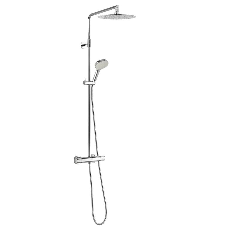 Komplett takdusj med 250mm takdusjhode. Hånddusj med 110mm dusjhode og rubcelan. Justerbar stang 1020-1250mm. Vender mellom kaldt og varmt vann i termostatkranen. Skoldesperre.Ved kjøp av en nippel art nr: 4849400 kan stangen nå kappes på alle våre Damixa takdusjer for ønsket lengde.Ved kjøp av en nippel art nr: 4849400 kan stangen nå kappes på alle våre Damixa takdusjer for ønsket lengde.