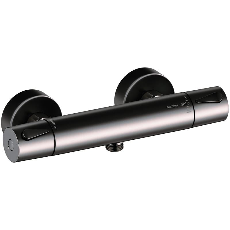 Termostatkran med eco-save og skoldesperre. Børstet grafitt overflate.