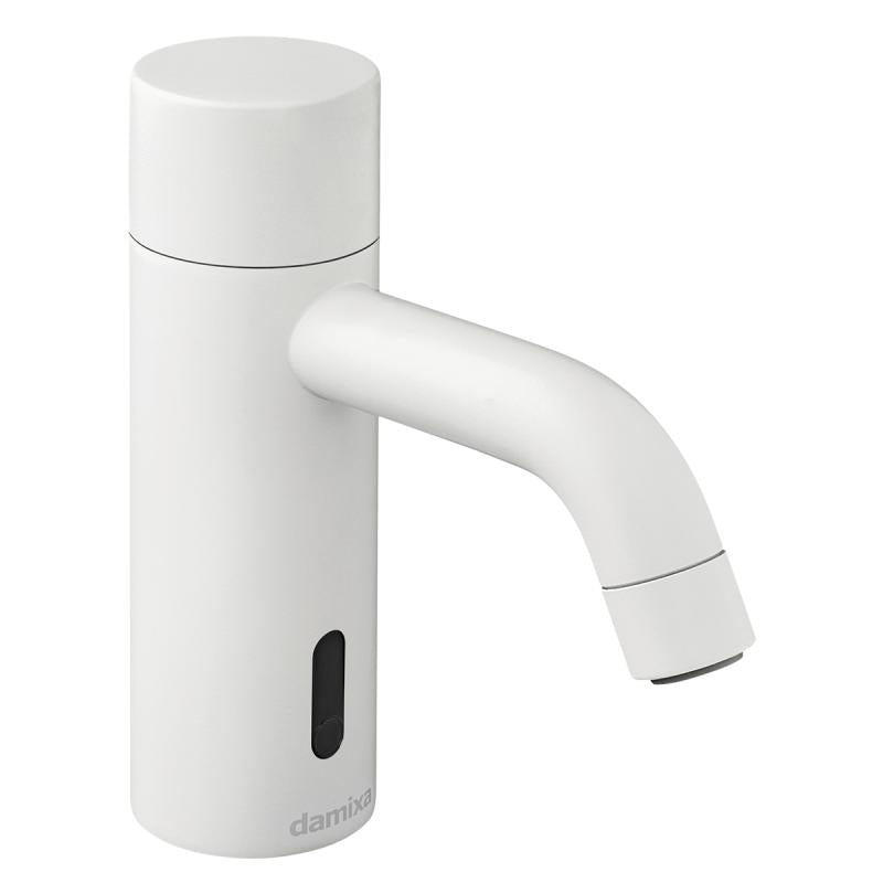Beregnet for offentlig miljø. Sensorstyrt servantkran med fast innstilling av temperatur og vannmengde. Hvit matt overflate.