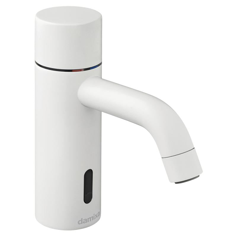 Berøringsfri servantkran med mulighet for manuell innstilling av temperatur og vannmengde. Beregnet for bruk i private hjem.