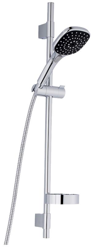 3-strålig hånddusj med kalkavvisende sil Eco Flow 7,5 l/min Såpeskål Glidestangen har fleksibelt øvre veggfeste