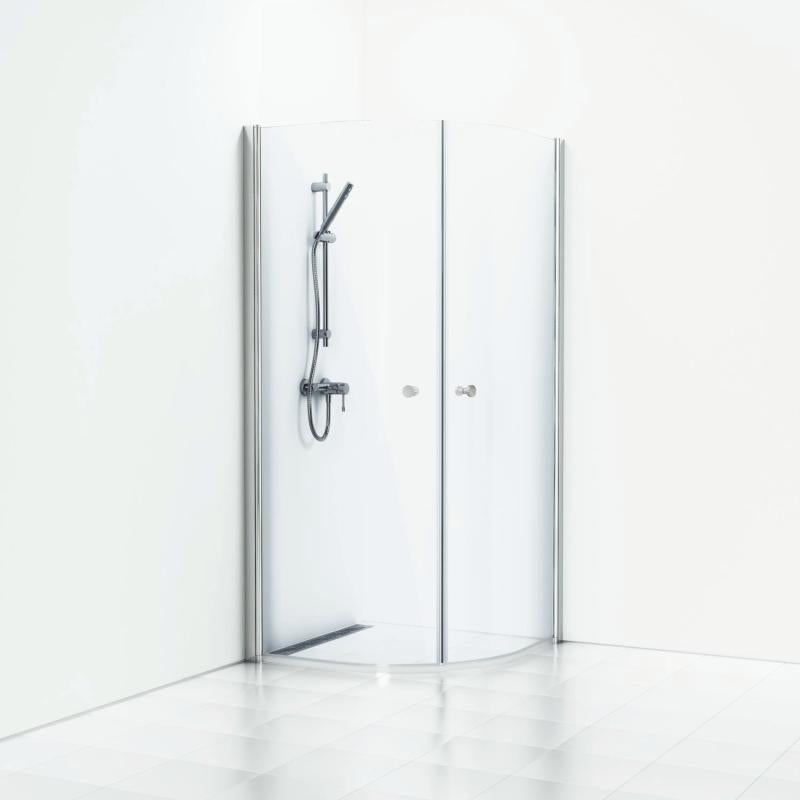 Skoga halvrund hjørnedusj 90x90x198 alu blank profil og klart glass.