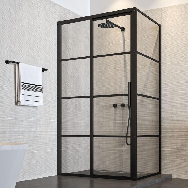 Venstrehengslet 210 cm høy skyvedør for montering i nisje. Serien har 8 mm sikkerhetsglass med Sealglas anti-kalk belegg. Døren kan også monteres med sidevegg, denne må da bestilles i tillegg. Utvendig monterte profiler og skruer sørger for at det er enkelt å rengjøre døren på innsiden. Farge: matt sort.