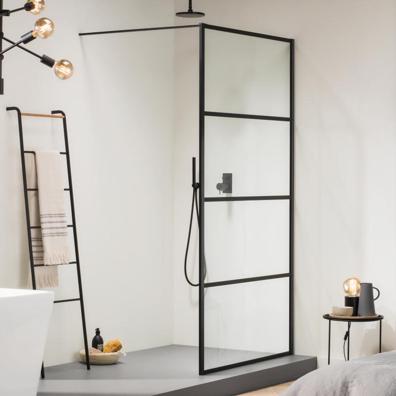 210 cm høy dusjvegg som kan monteres både venstre- og høyrevendt. Serien har 8 mm sikkerhetsglass med Sealglas anti-kalk belegg. Støttestaget kan monteres i vinkel ved bruk av egne festbeslag. Hvis Walk-in veggen ønskes montert frittstående bestilles ett ekstra støttestag. Farge: matt sort.