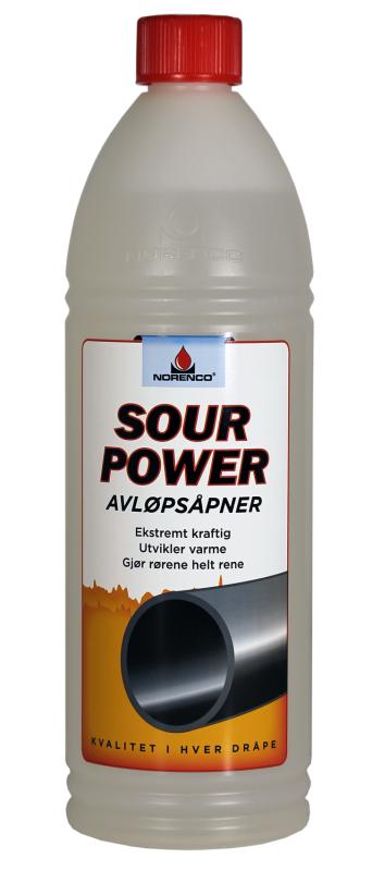 Sour Power er en ekstremt kraftig avløpsåpner med pH 0,3. Den syrebaserte avløpsåpneren løser opp tekstiler, papir, hår, fett, bind, våtservietter, snus, tamponger, urinstein, m.m. Egenvekt på hele 1,85 kg per liter. Sour Power må brukes med stor forsiktighet. Må ikke blandes med andre avløpsåpnere.