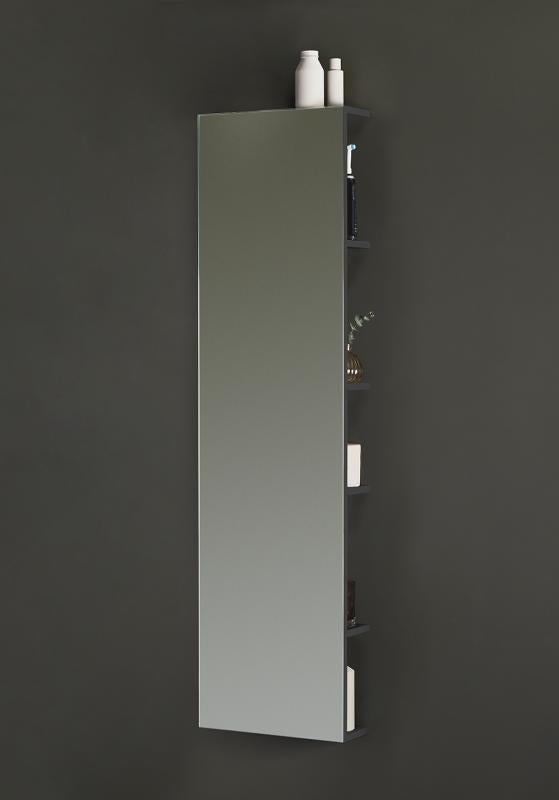 Helkroppsspeil med hyller som er tilgjengelig fra begge sider. Lett tilgjengelig 230 V-uttak, og med plass til f.eks eltannbørsten. Passer like bra i ditt baderom som i gangen eller på soverommet. Ferdigmontert.