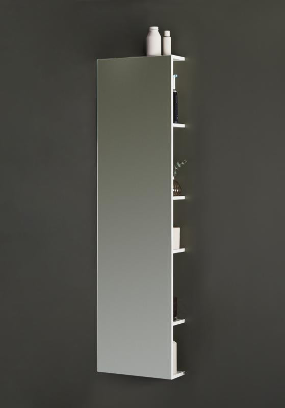 Helkroppsspeil med hyller som er tilgjengelig fra begge sider. Lett tilgjengelig 230 V-uttak, og med plass til f.eks eltannbørsten. Passer like bra i ditt baderom som i gangen eller på soverommet. Ferdigmontert.