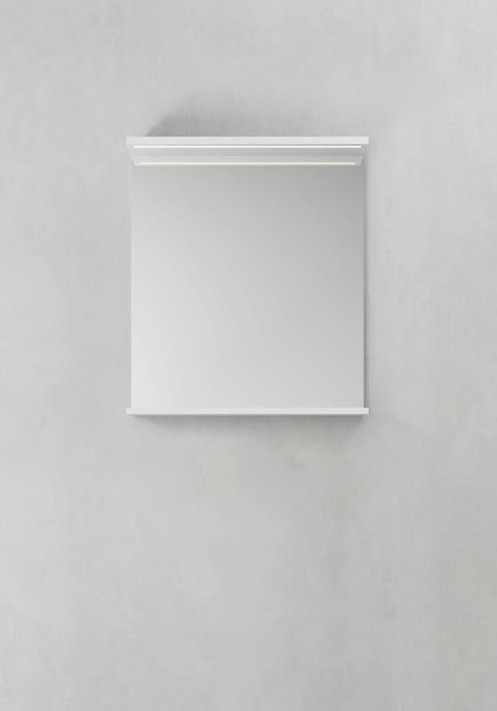 Speil med funksjonell belysning med innfelt LED-profil eller LED-spotter med varmhvitt lys. Praktisk hylle for avlastning. Enkel installasjon for en person med justerbare opphengsbeslag. Forberedt for enkel el-installasjon. IP24