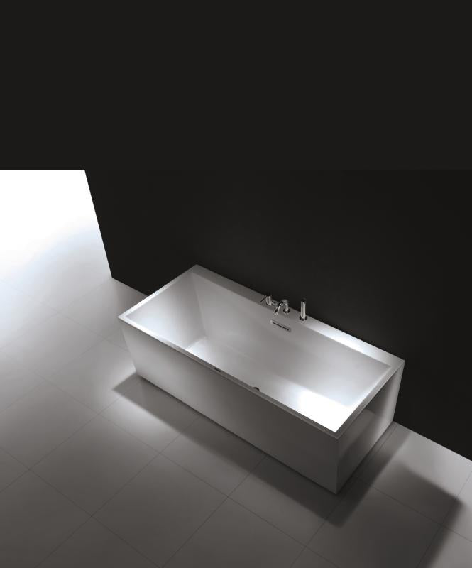 Et lekkert rektangulært Back-to-wall designbadekar som er helstøpt i sanitærakryl, med front -og to sidepaneler. Badekaret kan monteres i valgfritt hjørne eller midt på vegg. Et romslig og moderne badekar med utsøkt kvalitet og finish.