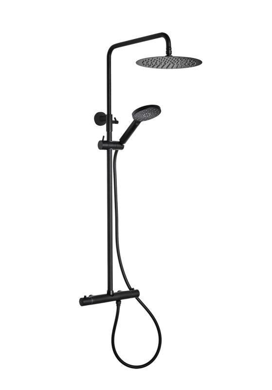 Komplett takdusj med tynt dusjhode av rustfritt stål, Ø200, 250 eller 300mm. Pen termostatblander av messing med skoldingsperre og HeatProtection. Velg mellom fargene krom, matt svart og børstet messing. Dusjstang med teleskopfunksjon. AntiTwist, som betyr at dusjhåndtaket kan rotere fritt uten at slangen vrir seg. Praktisk og stilren hånddusj i ABS. Antikalksystem for enkel fjerning av kalk i dusjhodet samt hånddusj. Med Water Save som bety at du bruker mindre vann.