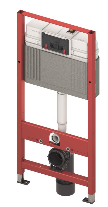 "TECEbase innbygningssisterne med Uni tank for frontbetjening, monteringshøyde 1120 mm Innbygningssisterne med "easy fit" montasje av betjeningsplate. Egnet for montering som enkeltblokk, som veggmodul foran massive vegger og for montering i stendervegger av metall eller tre. Oppfyller nivå 5 i BREEAM-NOR 2016 Består av: ? Sikkerhetstank laget av slagfast plast, testet i henhold til EN 14055 ? Sisternetank og innmat ferdig montert fra fabrikk og forseglet ? 10 liters tank, leveres ferdig innstilt på 6 liters spylevolum, 3 liter fast innstilling på redusert spyling, Restvolum kan brukes til umiddelbar rengjøringsspyling. ? Kondens isolert ? Hele programmet med betjeningsplater passer til innbygningssisternene. ? Fullt eller redusert spylevolum, bestemmes ved valg av betjeningsplate med to knapper ? Støysvak hydraulisk påfyllingsventil, armaturgruppe 1 i henhold til DIN 4109 ? Bolteavstand for montering av skål er 180 mm og 230 mm Leveres komplett med: ? Selvbærende, pulverlakkert Ramme ? 2stk M12 bolter med muttere ? WC avløpsbend DN 90 med overgangsadapter DN 90/100 laget av PP ? Overgangsadapter også egnet for vannrett tilkopling ? WC-anslutningsdeler DN 90, inklusive ters ? Justerbare ben 0200mm"