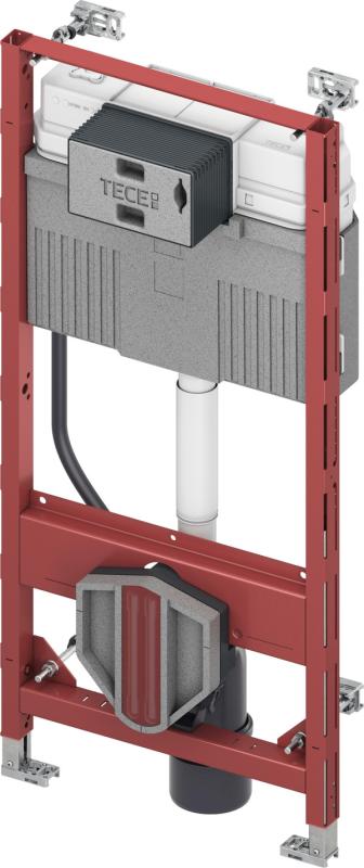 TECEprofil innbygningssisterne med Uni 2.0 sisterne. Innbygningssisterne med "easy fit" montasje av betjeningsplate. Egnet for installering inne i eller utenpå vegg eller i forbindelse med TECEprofil Profilrør. Kun for frontbetjening. Oppfyller nivå 5 i BREEAM-NOR 2016 Generell informasjon: • Sikkerhetstank laget av slagfast plast, testet i henhold til EN 14055 • Sisternetank og innmat ferdig montert fra fabrikk og forseglet • 10 liters tank, leveres ferdig innstilt på 6 liters spylevolum, kan enkelt justeres til 4,5/7,5/9 liter spylemengde, 3 liter fast innstilling på redusert spyling, Restvolum kan brukes til umiddelbar rengjøringsspyling. • Isolert mot kondens • Hele programmet med betjeningsplater passer til innbygningssisternene. • Fullt eller redusert spylevolum, bestemmes ved valg av betjeningsplate med to knapper • Støysvak hydraulisk påfyllingsventil, armaturgruppe 1 i henhold til DIN 4109 • Bolteavstand for montering av skål er 180mm og 230mm Leveres komplett: • Ramme av profilrør • 2stk. M12 bolter med muttere • 4stk justerbare veggfester • DN 90 klosettbend, med 90/110 overgang i PP • Overgang også egnet for vannrett tilkopling • Anslutningsdeler DN 90, inklusive terser • Justerbare ben 0-200mm med brems • Tilkoblingsboks med beskyttelse og trekkerør for tilkobling av dusj-toalett (sjekk posisjon), med koblingsboks og deksel for transformator.