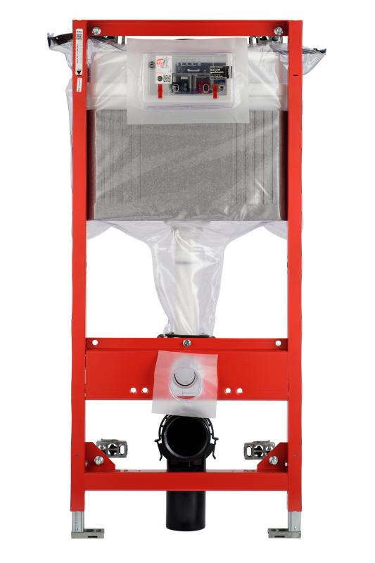 "TECEprofil innbygningssisterne med Uni 2.0 sisterne. Innbygningssisterne med "easy fit" montasje av betjeningsplate. Egnet for installering inne i eller utenpå vegg eller i forbindelse med TECEprofil Profilrør. Kun for frontbetjening.. TECEprofil Sealingbag er en innbygningssisterne utviklet spesielt for å tilfredsstille TEK 17. Sisternen har en vanntett bag som dekker hele tanken og spylerøret. I våtsoner kan sisternen monteres med påstrykningsmembran som tettesjikt foran sisternen, dersom det er enkel tilgang til utskifting av sisternen fra tilstøtende rom. Dermed bidrar Sealingbag til at montasjen blir både enkel, rimelig og sikker. I tørre rom er det ikke krav om tilgang fra tilstøtende rom. Oppfyller nivå 5 i BREEAM-NOR 2016. Består av: ? Sealingbag: Vanntett innkapsling av sisternen med drenering ut i rommet under toalettskålen ? Sisternetank og innmat ferdig montert fra fabrikk ? 10 liters tank, leveres ferdig innstilt på 6 liters spylevolum, 3 liter fast innstilling på redusert spyling ? Kan enkelt justeres til 4,5/7,5/9 liter spylemengde ? Isolert mot kondens ? Fullt eller redusert spylevolum, bestemmes ved valg av betjeningsplate med to knapper ? Meget støysvak innløpsventil ? Bolteavstand for montering av skål er 180mm og 230mm Leveres komplett: ? Ramme av profilrør ? 2stk. M12 bolter med muttere ? 4stk justerbare veggfester ? DN90 klosettbend, med 90/110 overgang i PP ? Overgang også egnet for vannrett tilkopling ? Anslutningsdeler DN90, inklusive terser ? Justerbare ben 0-200mm med brems ? Støydempeplate"