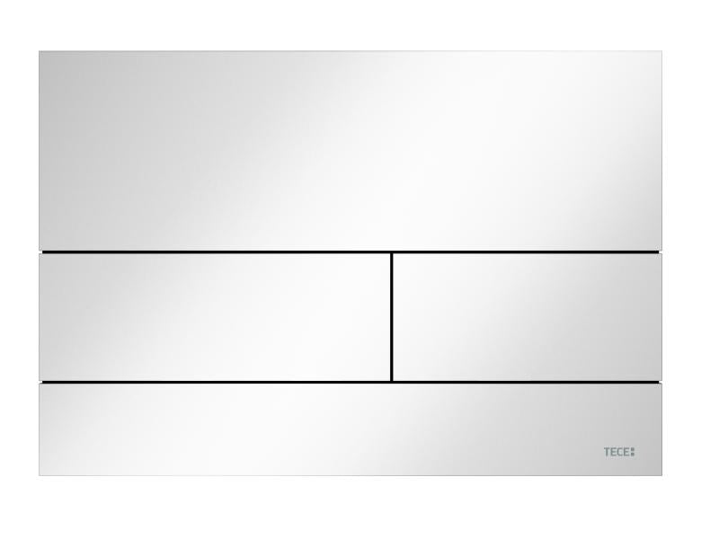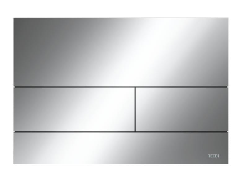 Betjeningsplate for TECE sisterner for topp- og frontmontering. Ekstra flat metall betjeningsplate med to fjærdempede trykk-knapper. Bygger kun 3mm ut fra vegg Kompatibel med TECEprofil såpeinnsats for rengjøringstabletter. Mål: (B x H x D) 220 x 150 x 3mm NB! Veggbekledning min. 18mm.