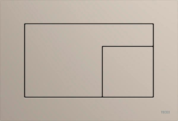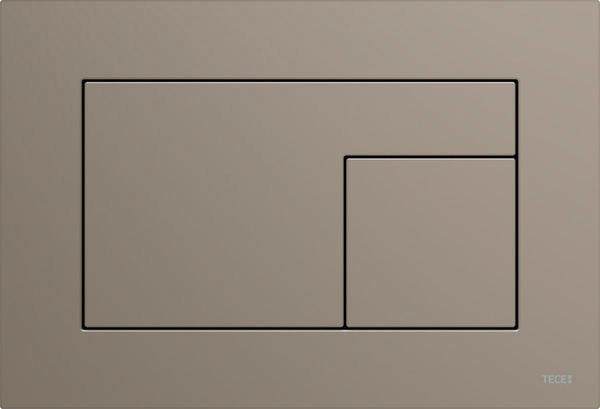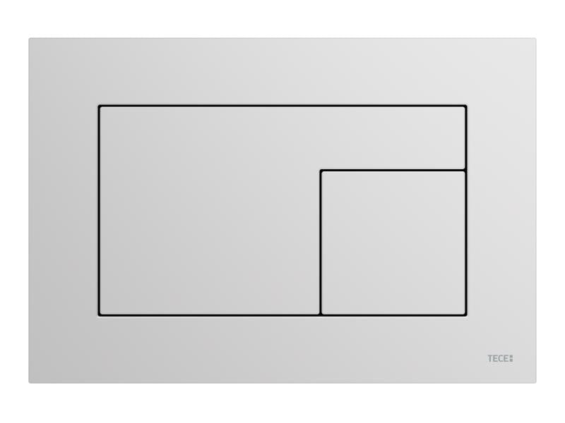 Betjeningsplate for TECE sisterner, for topp- eller frontmontasje. Svært lavtbyggende (5 mm) betjeningsplate i kunststoff med FENIX NTM -overflate (FENIX® av Arpa Industriale). Matt Soft touch overflate med anti-fingerprint. Gummidempede trykknapper. Inklusive feste-materiell. Kan monteres helt plant med veggen ved bruk av installasjonsramme og distanseramme. Ønsker du å gå lenger utfra vegg, så bruker du distanseramme. Kompatibel med TECEprofil såpeinnsats for rengjøringstabletter Mål: (B x H x D) 220 x 150 x 5 mm NB! Veggtykkelse min. 23mm. Design by Konstantin Grcic