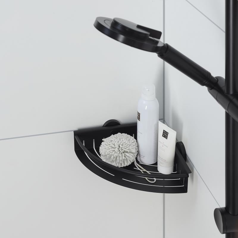 "Denne større versjonen av Tiger Boston Hjørnekurven, med en tidsriktig svart finish, er perfekt for plassering av ditt utvalg av sjampoer, balsam og dusjsåper når du dusjer. Med flat bunn og høye kanter kan du være trygg på at alle produktene forblir i kurven og ikke faller ned. Ettersom denne dusjkurven er beregnet på montering i et hjørne, er den en fantastisk plassbesparer i blant annet dusjen. Det er enkelt å montere hjørnekurven på veggen, og monteringsdelene (medfølger) er skjult av estetiske hensyn. I tillegg til denne praktiske og stilfulle hjørnekurven, består Boston-serien av et bredt spekter av annet tilbehør til baderom og toaletter. Tannglassholderen kan også monteres ved hjelp av TigerFix type 1, et patentert klebesystem som gjør at du raskt enkelt kan feste tilbehør på jevne, harde flater. Det er ikke behov for å bore hull, og tilbehøret kan enkelt fjernes igjen uten å etterlate seg rester på flate det har vært montert på. TigerFix fås kjøpt separat."
