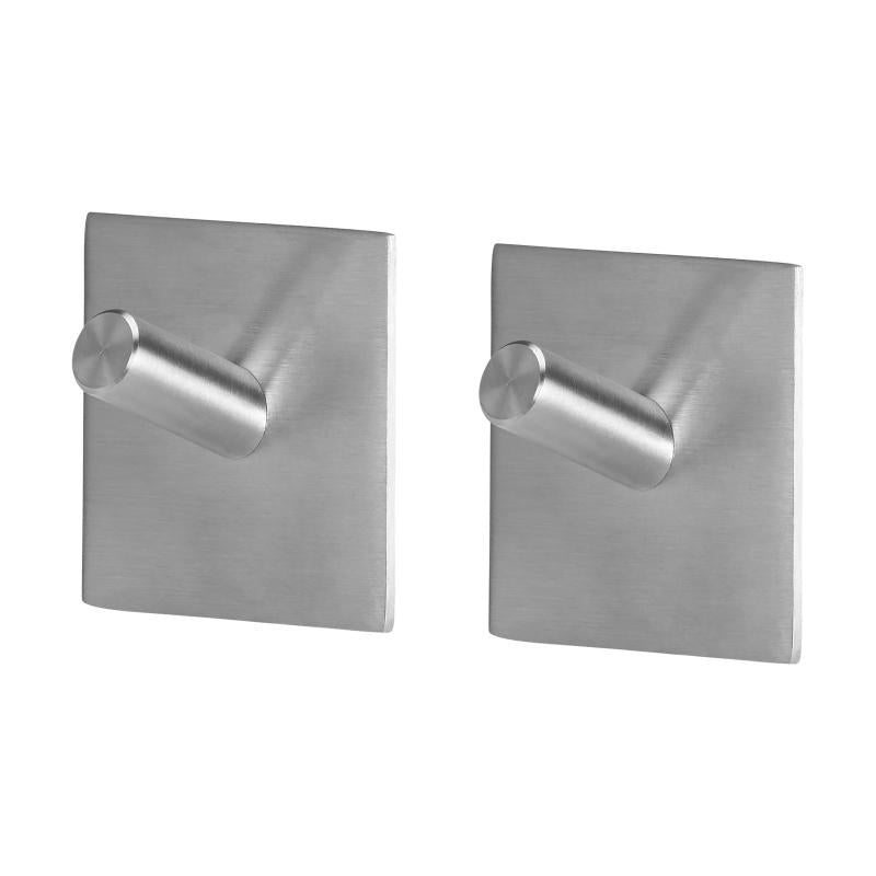 Pakke med 2 stk firkantede kroker som monteres med dobbeltsidig teip. Klar til å henges opp, men husk å vaske og la tørke før du fester på produktet.