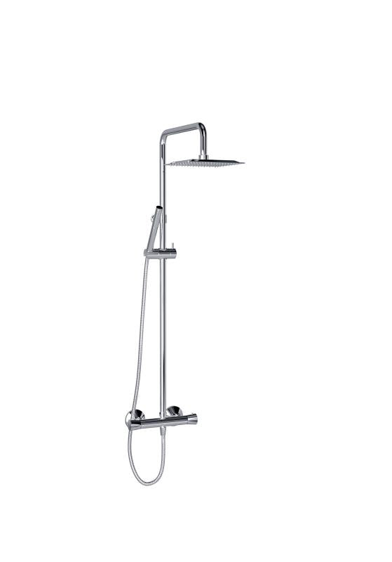 VikingBad Tiril Rainshower med rett dusjsett Rainshower i slankt og elegant design med termostatbatteri og skoldesperre som gjør det trygt for de minste. Høydejusterbart toppfeste gjør dusjen enkel å montere.