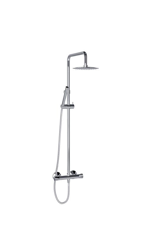 VikingBad Tiril Rainshower med rundt dusjsett Rainshower i slankt og elegant design med termostatbatteri og skoldesperre som gjør det trygt for de minste. Høydejusterbart toppfeste gjør dusjen enkel å montere.
