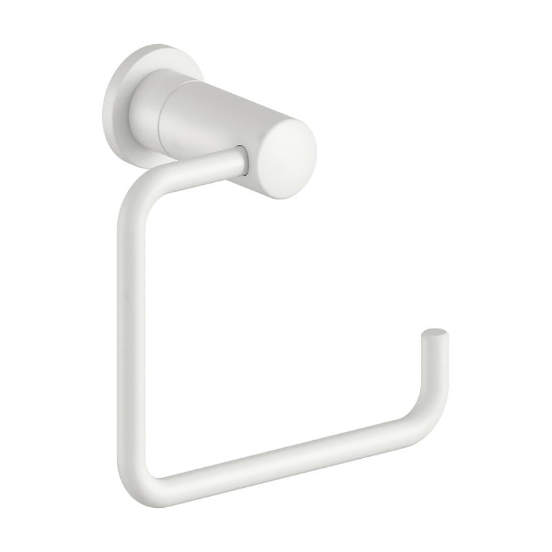 Toalettrullholder i messing med hvit matt overflate, leveres i flere overflater. Festes med skruer.