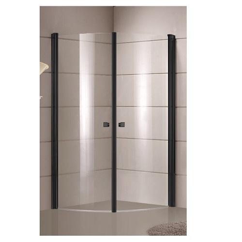 Toke buet dusjhjørne, komplett hjørne med 2 dører. Med hev/ senk- funksjon. Sorte profiler.