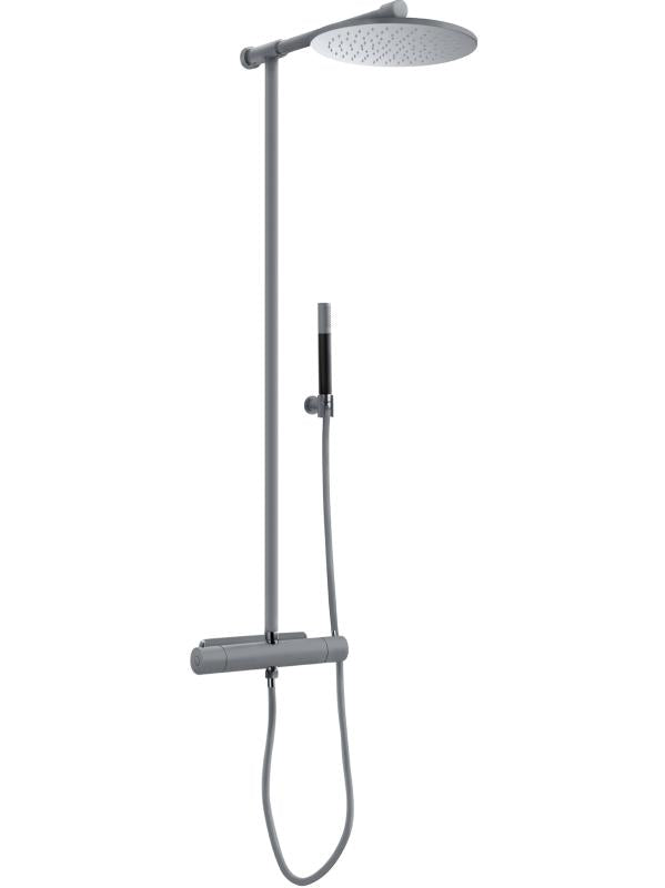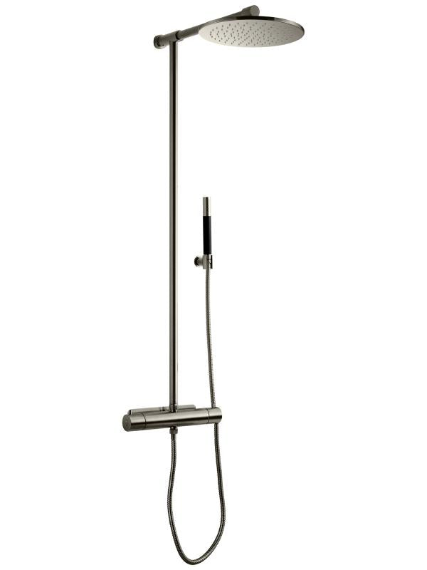Takdusj med trykk- og termostatstyrt dusjbatteri.