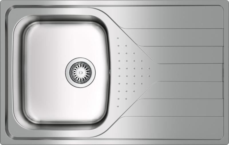 Vendbar vask med kum og avrenningsfelt for nedfelling. Leveres med kurvventiler, overløp,dekkskive og vannlås. UNE100DWOH leveres uten kranhull