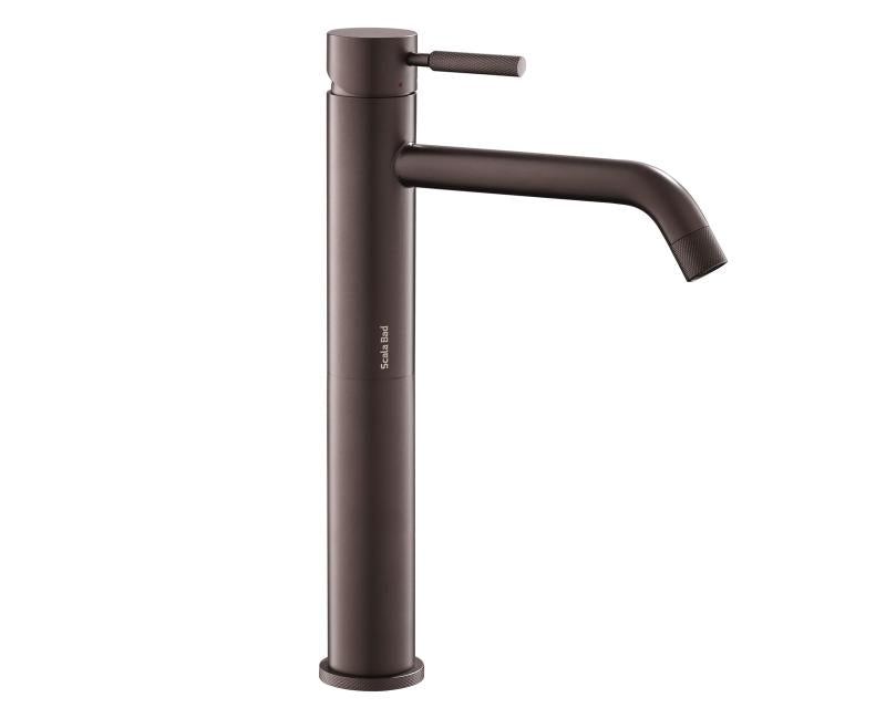 Urbano høyt servantarmatur i rustfritt stål med crystal cut detaljer til bolleservant i PVD overflatebehandlet matt Bronse. Urbano Kommer i 5 ulike overflater samt i lav modell. Match Urbano servantarmatur med bunnventil i samme utførelse. Urbano er SINTEF-Godkjent.
