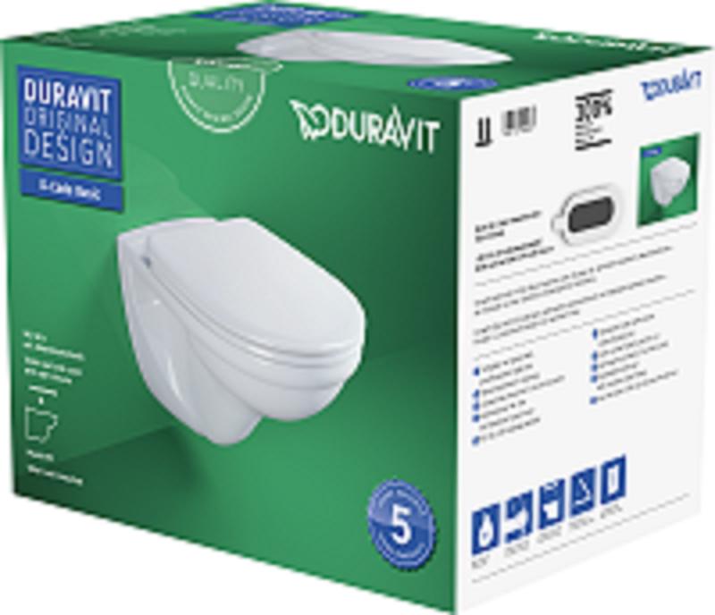 Veggmontert toalett Duravit Basic Sampakk inkl. Toalettsete u/ dempet lukking