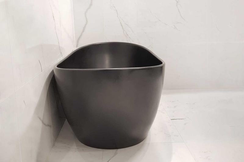 Viena Svart er et lekkert frittstående badekar. Det ovale designet skaper et mykt og moderne uttrykk. Utførelsen i svart matt kompositt gjør dette til et blikkfang. Kommer med klikkventil og justerbare ben. Hvert produkt er unikt da det håndlages/pusses for hånd. Variasjoner vil forekomme på modeller i farget utførelse (svart og grå) hvor pigment er tilsatt steinblandingen. Badedybde 45cm. Vekt 140 kg