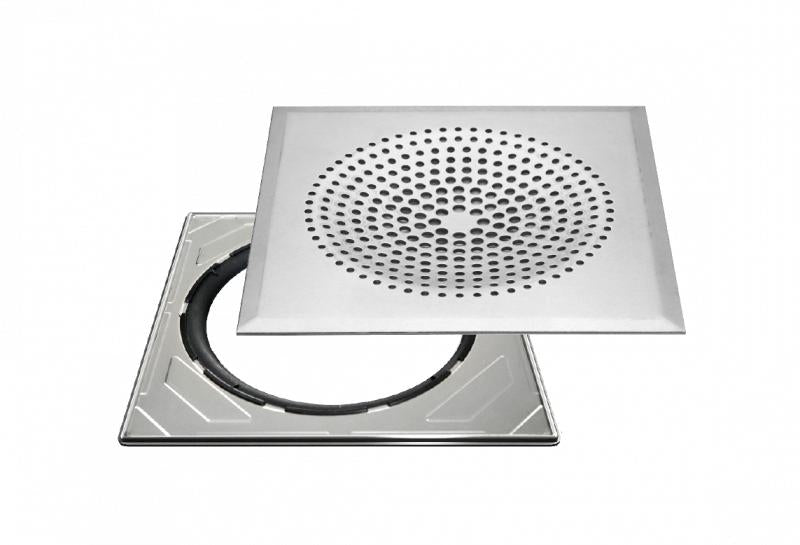 Vieser Modern med rustfri justerbar ramme 197×197 mm. Slitesterk gulvavløpsdeksel laget av rustfritt stål.