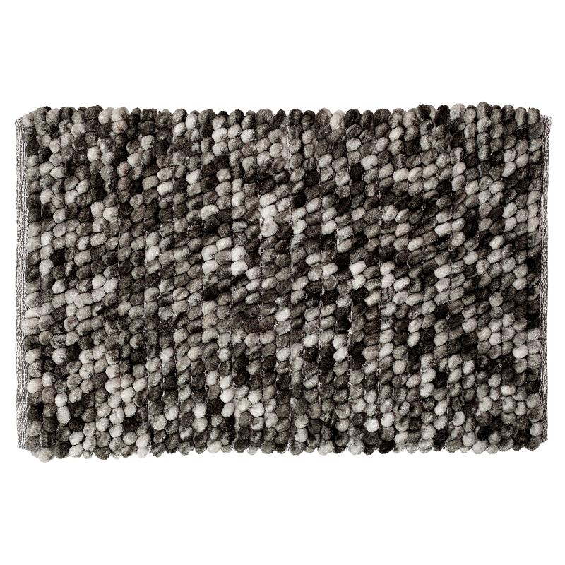 "Myk og behagelige badematter produsert i 100% polyester. Kan vaskes i maskin. Mattene skal tørkes langsomt, ikke vris opp. Med antiskli-belegg på baksiden. Str: 500 x 800mm Farge: mørk grå/hvit