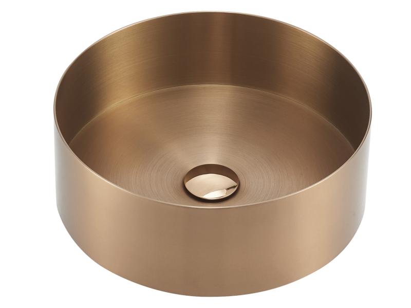 Vakker rund bolleservant i rustfritt stål. Viola kommer i 3 flotte overflater: Børstet Kobber, Børstet Gull og Gunmetal. Match disse servantene med våre armaturer i samme utførelse for et eksklusivt uttrykk. *Bunnventil medfølger ikke - Vi anbefaler bruk av åpen bunnventil