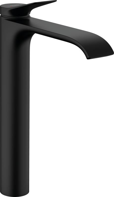 Organisk design med bred, fyldig vannfallsstråle. Høy versjon i matt sort til bolleservant. Uten bunnventil. Vannsparer til max 5 l/min. Fås også i krom og matt hvit.