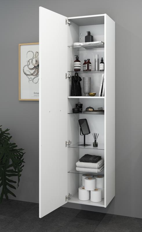 Et høyskap gir deg alltid verdifull og praktisk oppbevaringsplass. Vårt høyskap leveres med flyttbare hyller slik at du kan utnytte plassen maksimalt. Skapet har 1 trehylle og 5 glasshyller og er vendbar.