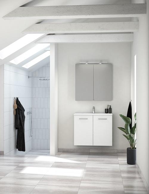 1904 Voss møbelpakke, 60x35 cm hvit matt med 2 dører, servant og 60 cm speilskap m/2 dører. Belysning og armatur kommer som tillegg i prisen. Voss fra 1904 har rene linjer og passer inn i alle baderom, uansett størrelse og stilretning. Med 1904 Voss får du nordisk design i god kvalitet med lang levetid. 1904 Voss er produsert utfra målet å redusere unødvendige belastninger på miljø og klima. Møblene er godkjent for svanemerket bygg