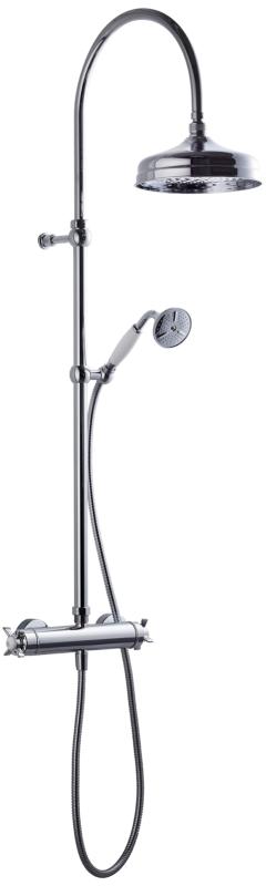 Takdusj Classic med trykk- og termostatstyrt dusjbatteri med omkaster for ha?nddusj. Enkel høydetilpasning av taksilen.